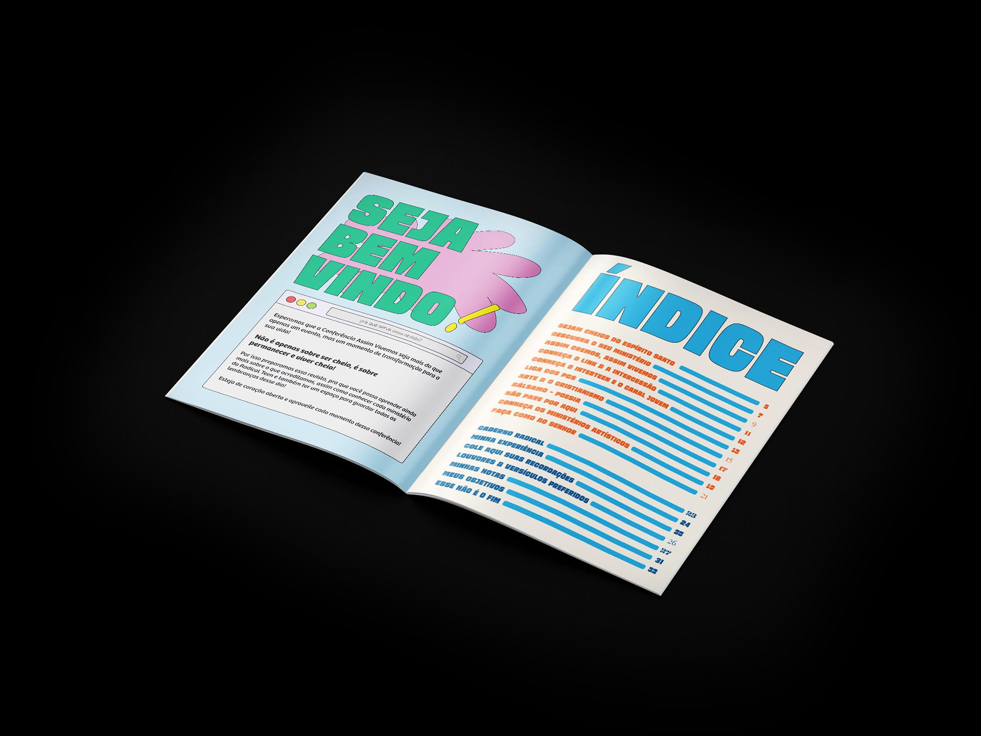 Revista de 32 páginas desenvolvida para a Conferência Assim Vivemos, do Radical Teen.